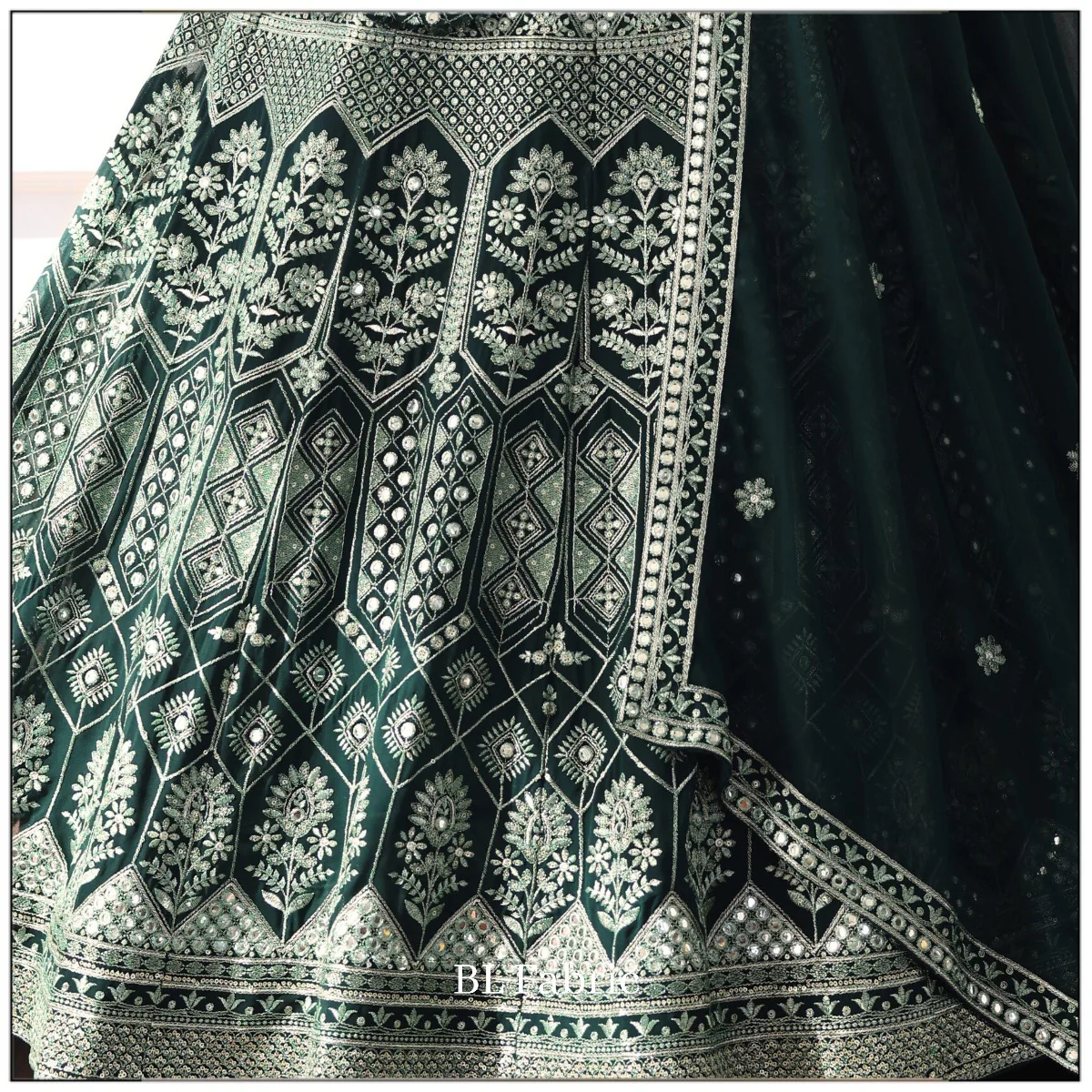 Green color Mirror Embroidery & Sequence work Lehenga Choli for Wedding Function BL1371
