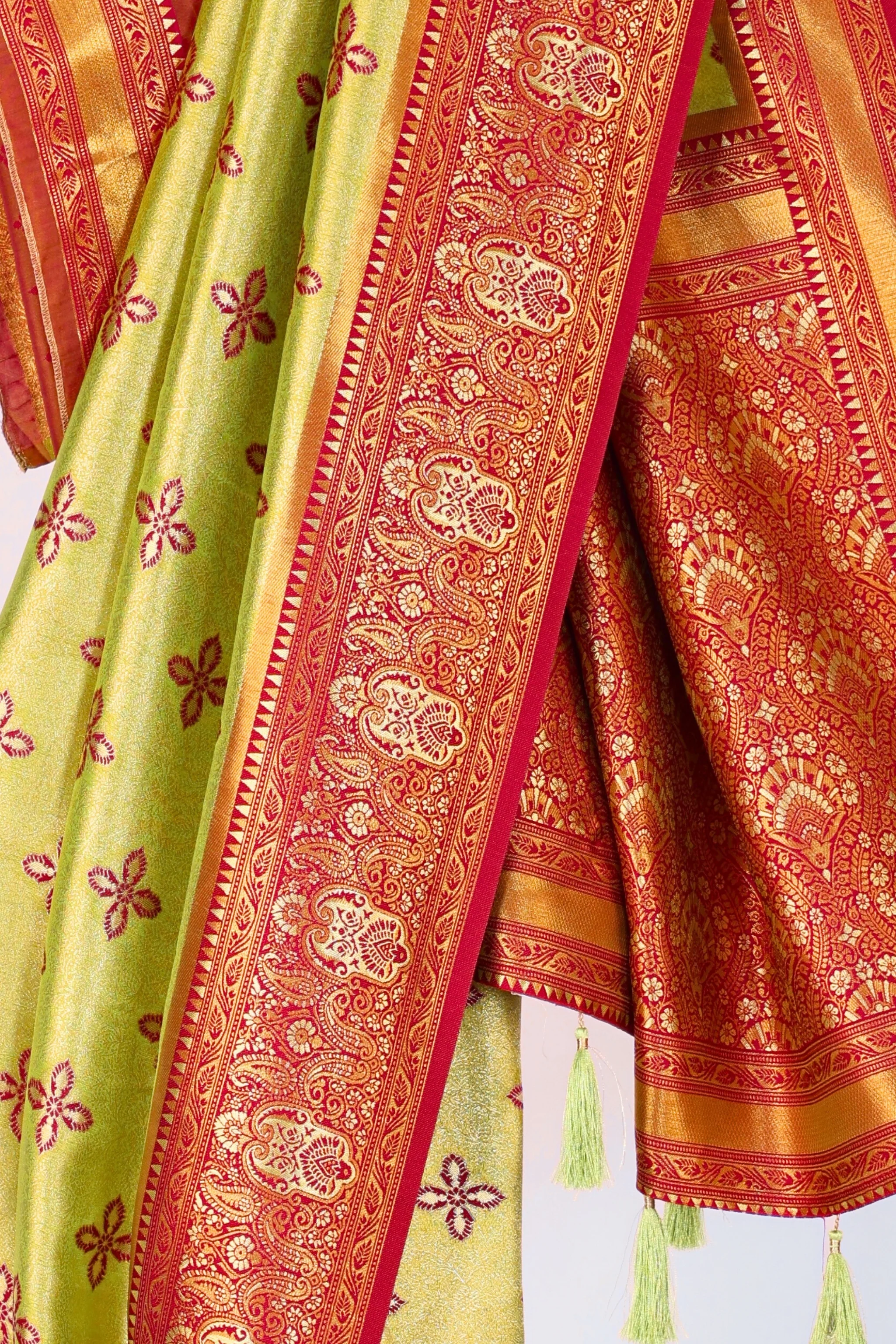 Light Green color Kanjivaram work Designer Saree BLS1001