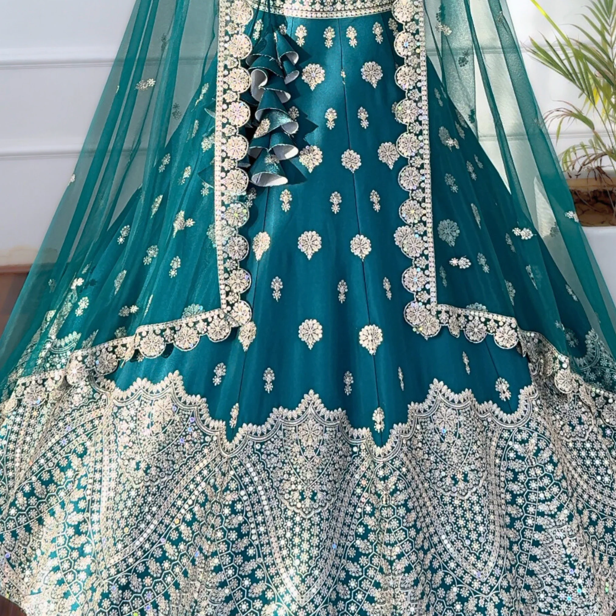 Mid Green color Sequence Thread work Designer Wedding Lehenga Choli For Wedding Function BL1489