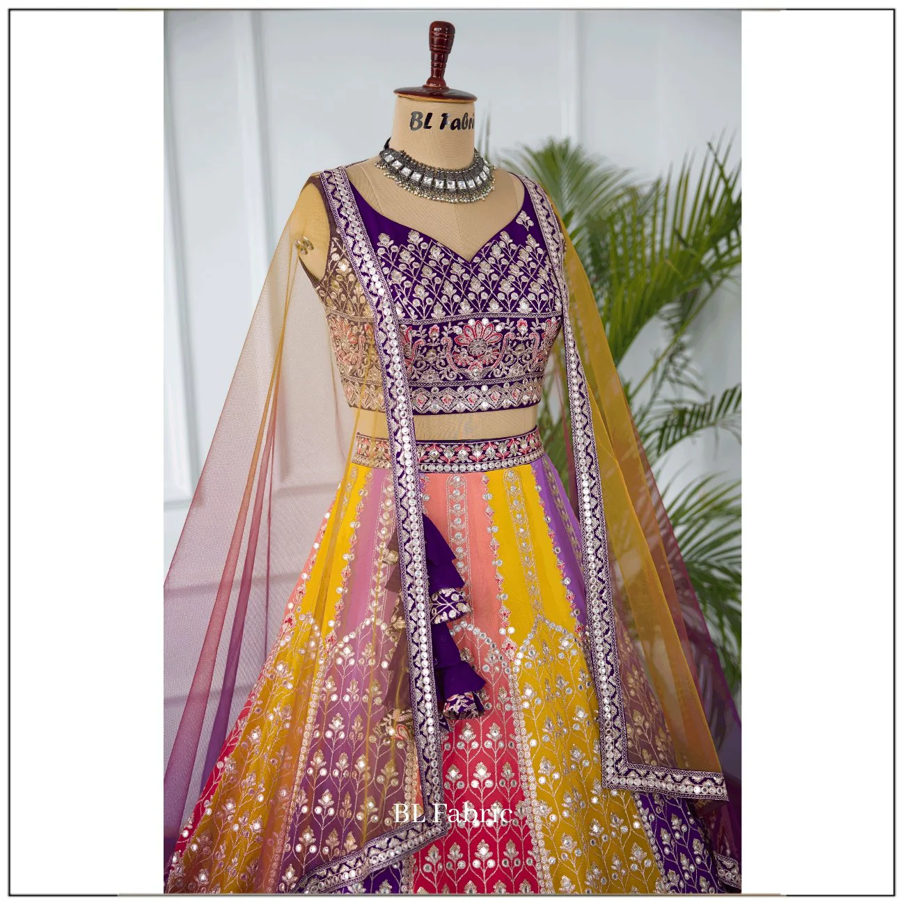 Multi color Sequence & Thread Embroidery work Designer Lehenga Choli for Any Function BL1450