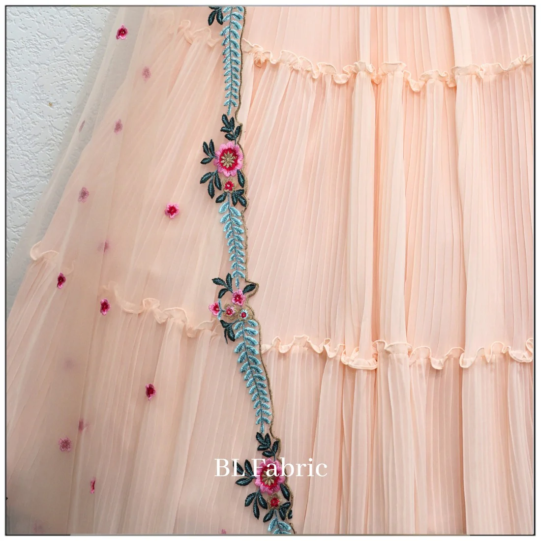 Peach color Embroidery & Crush work Ruffle Style Lehenga Choli for any function BL1226