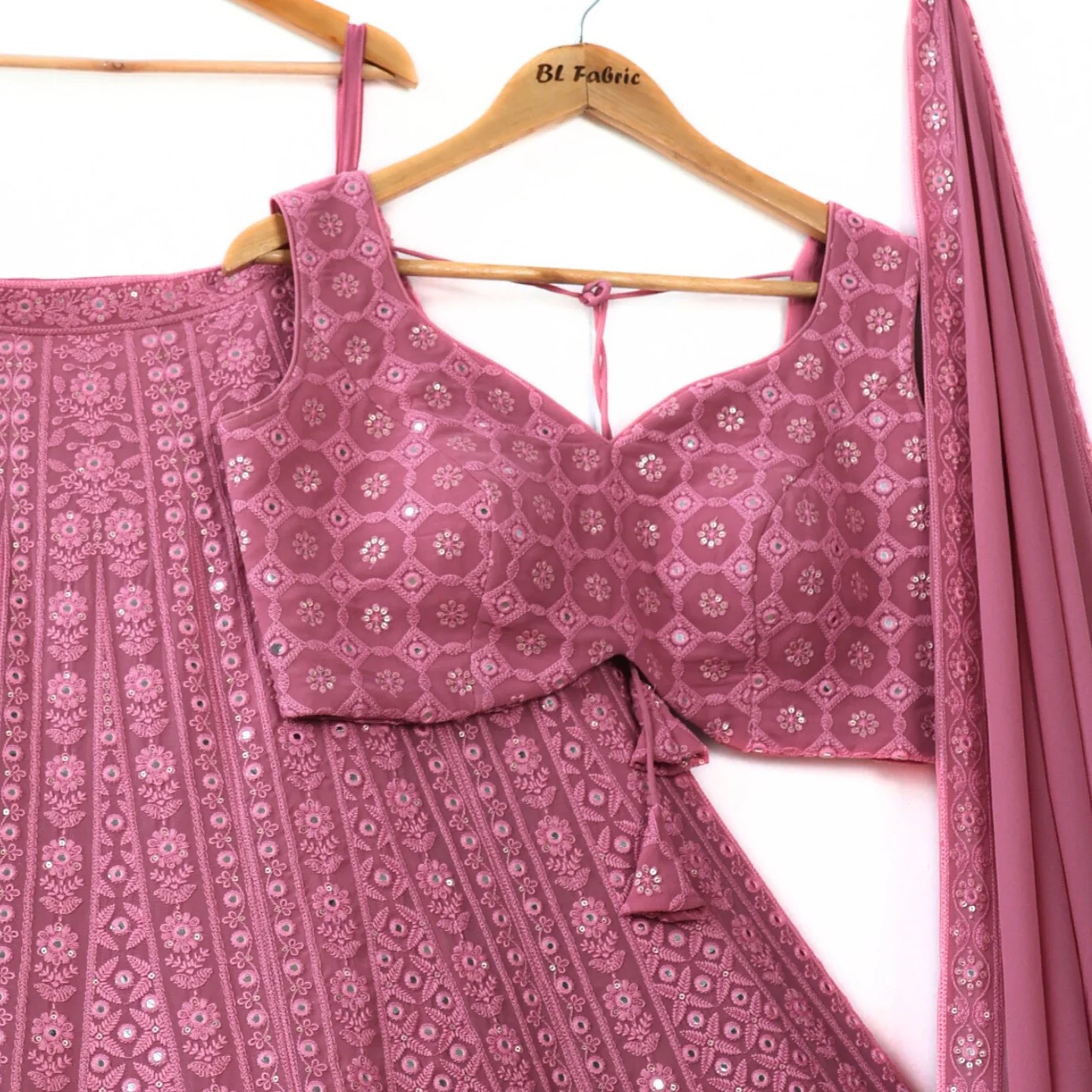 Lehenga : Faux Georgette With Mirror & Sequence Embroidery Thread Work