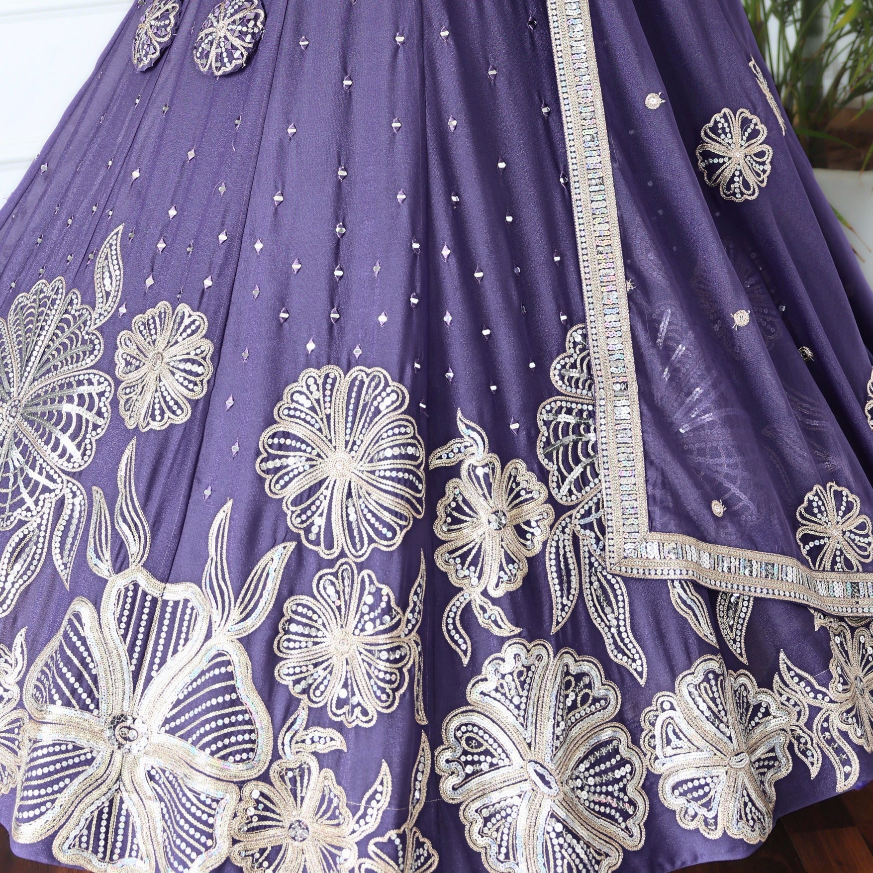 Rosy Purple color Real Mirror Embroidery work Designer Lehenga Choli for Wedding Function BL1469