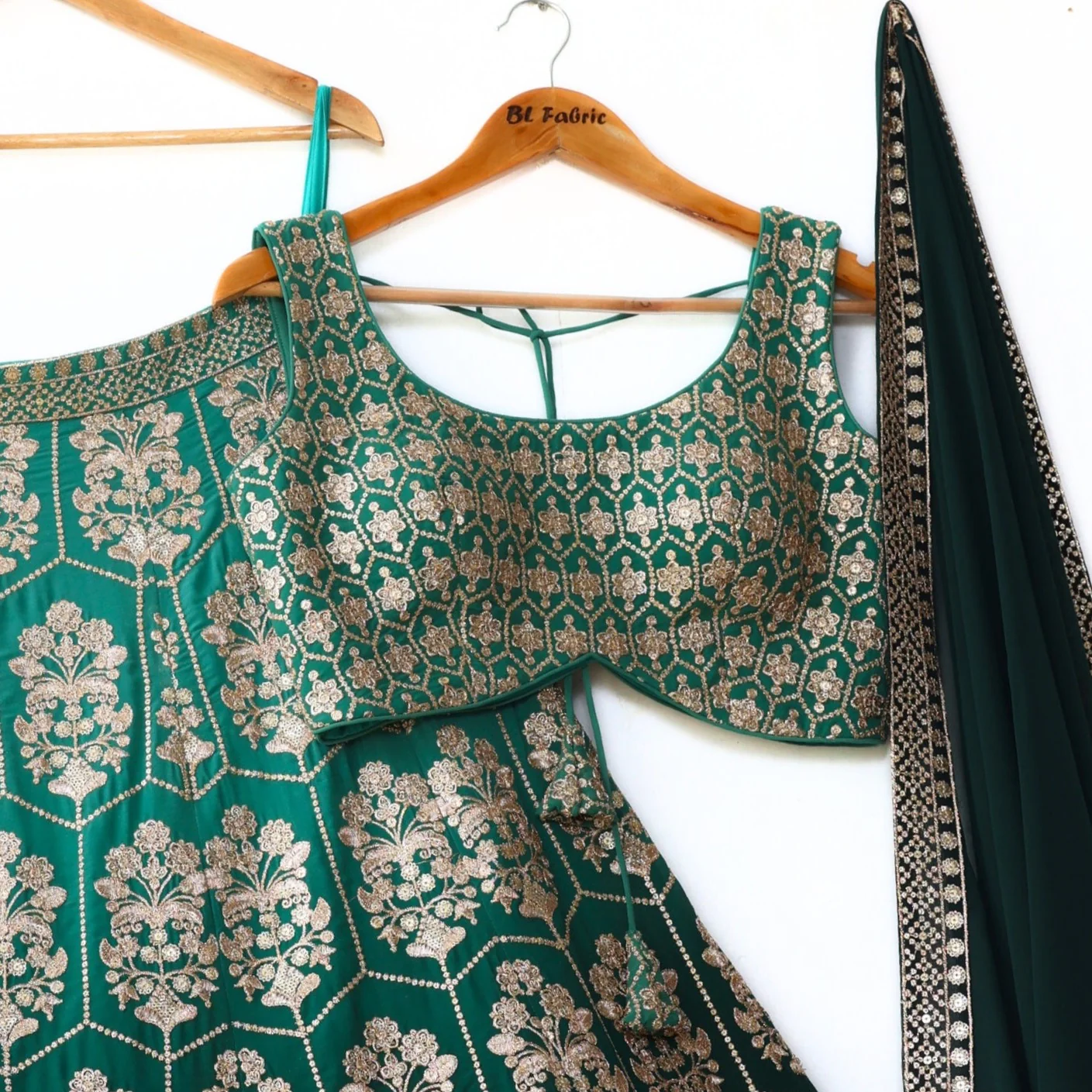 Shadding Green color Sequence Zari work Designer Faux Georgette Lehenga choli BL1312