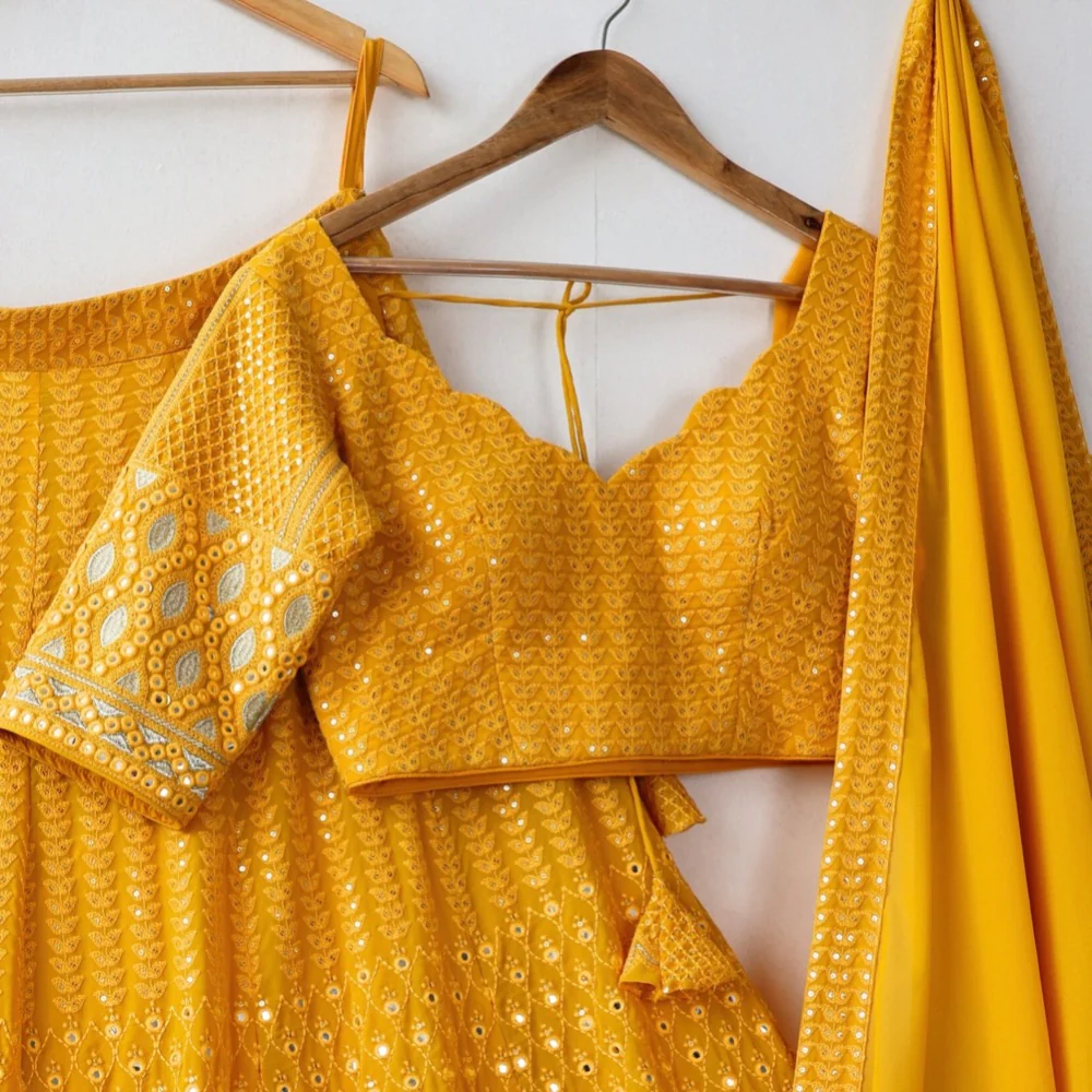 Yellow color Mirror & Sequence Embroidery work Designer Lehenga Choli for Wedding & Haldi Function BL1248